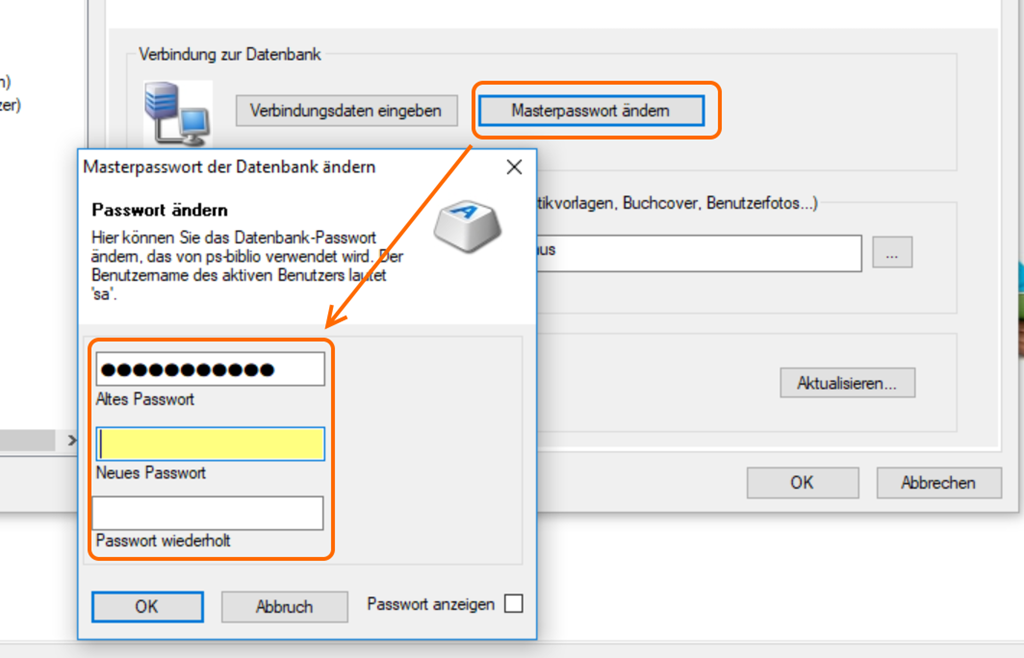 Wenn man die Meldung mit OK bestätigt, kann man im nächsten Fenster die Datenbankverbindung herstellen. Hier benötigt man das Standard-Passwort “0penb1bl10!”.