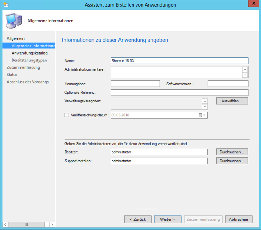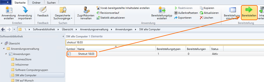 Zum Schluss muss man das Programm noch für die gewünschte Sammlung bereitstellen, bei mir ist das die Sammlung “SW alle Computer”, die alle Windows 10 Rechner enthält.