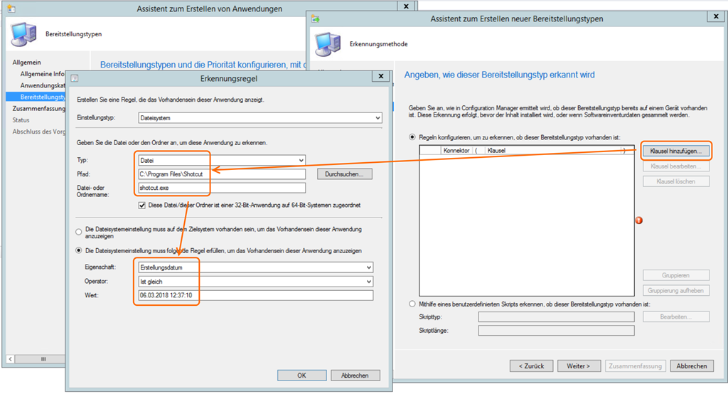 Als “Erkennungsmethode” überprüft man, ob die Programmdatei in einer Version mit dem richtigen Erstellungsdatum vorliegt. Im Gegensatz zu anderen Programmen kann man auf diesem Weg nicht die Version überprüfen. Diese Angabe ist scheinbar nicht so in der EXE Datei hinterlegt, dass SCCM sie versteht.