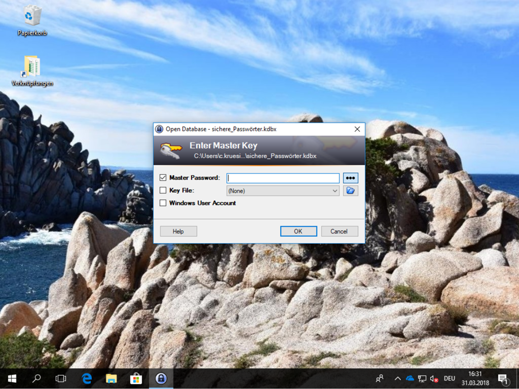 Wenn man das Programm Keepass das nächste Mal startet, wird automatisch die letzte Datenbank verbunden. Man muss also nur noch das Passwort eingeben, um diese zu öffnen.