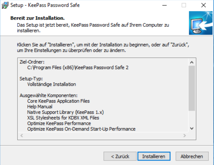 Bei der Installation kann man gut die Standardwerte übernehmen und jeweils auf “Weiter” und am Schluss auf “Installieren” klicken.