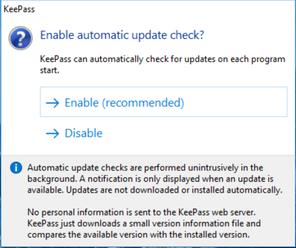 Beim ersten Start wird man gefragt, ob das Programm automatisch überprüfen soll, ob eine neuere Version verfügbar ist. Ich habe das jeweils ausgewählt.