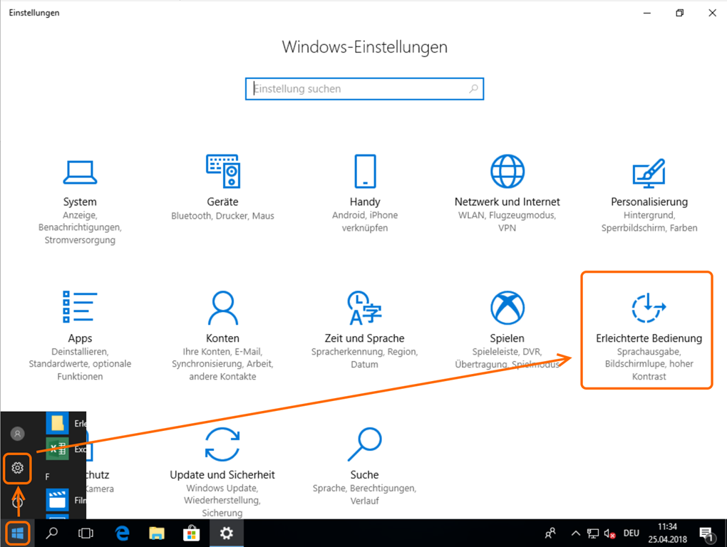 Die entsprechende Einstellung findet sich bei den “Windows-Einstellungen” unter “Erleichterte Bedienung”.