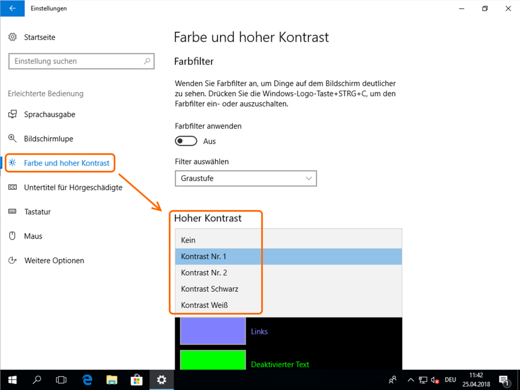 Hoher Kontrast in Windows 10