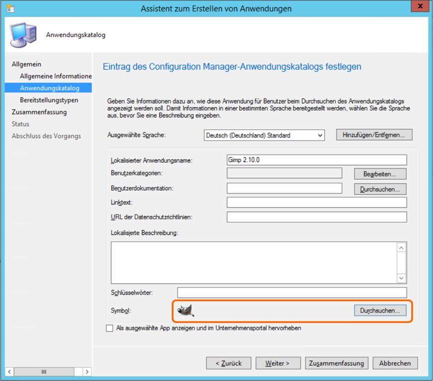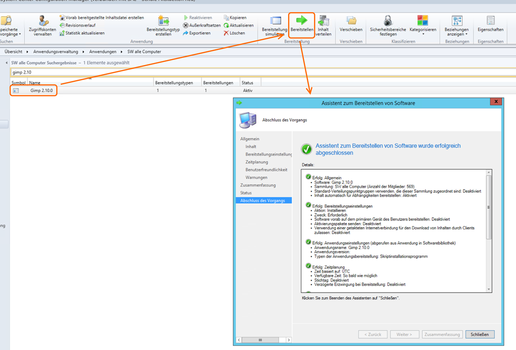 Nun muss man nur noch die Anwendung bereitstellen, bei mir wäre das für die Gruppe “SW alle Computer”.