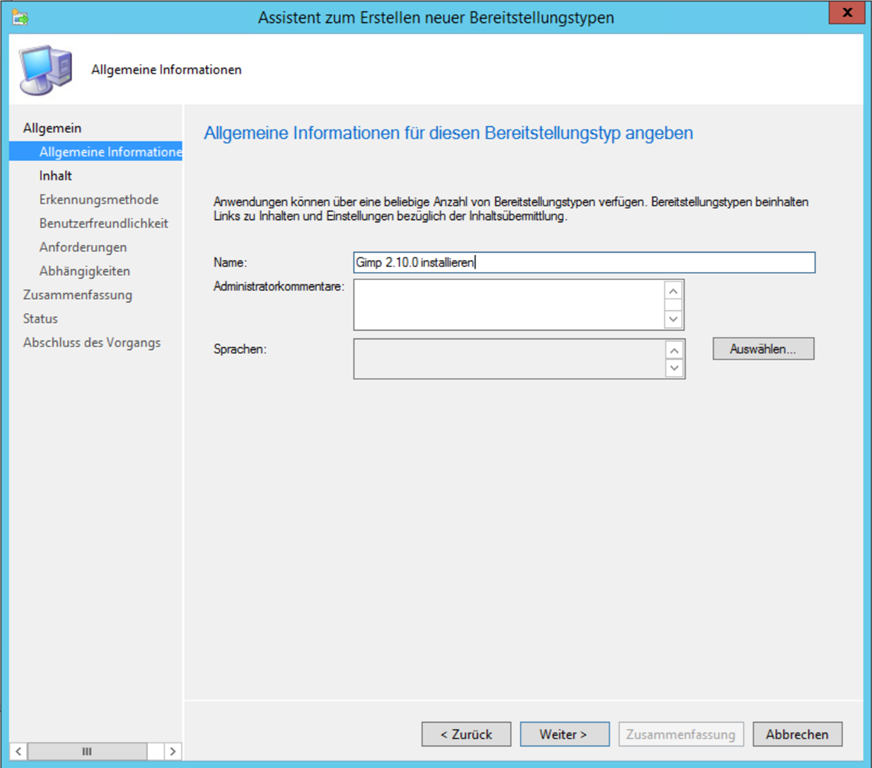 In SCCM erstellt man also eine neue Anwendung als Skript.