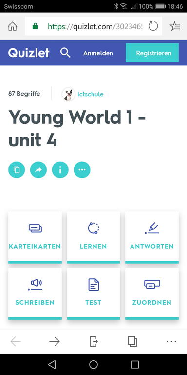 In diesem Szenario hat mich ein Schüler gefragt, ob er Englisch-Wörter in Quizlet üben dürfe, da er die anderen Aufgaben bereits fertig gelöst habe. Quizlet eignet sich zum Lernen von Kombinationen die man auch auf Karteikarten schreiben könnte, also z.B. von Wörtern in Fremdsprachen.
