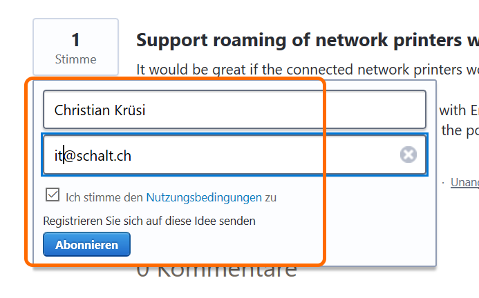 Ich gehe davon aus, dass Microsoft filtert, wenn viele Stimmen vom gleichen Internetanschluss oder mit der gleichen Mailadresse kommen um auszuschliessen, dass jemand seinen Wunsch auf der Wunschliste “hochmogelt”. Am besten ist es also, wenn ihr die Wünsche von zuhause aus und wo vorhanden mit der privaten Mailadresse unterstützt. Vielen Dank für die Unterstützung!