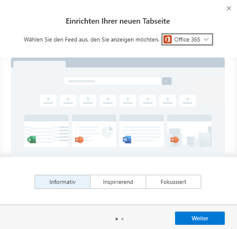 Hier kann man auswählen, wie eine neue Tabseite aussehen soll.