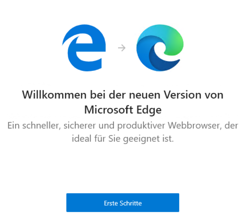Wenn man Edge Chromium nach dem Update von Edge zum ersten Mal öffnet, starten die “Erste Schritte” Dialogfenster.