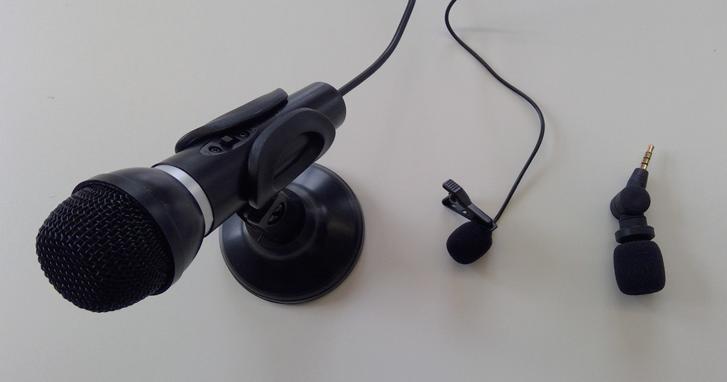 Für meinen Test habe ich ein günstiges Mikrofon von Speedlink (z.B. bei Microspot oder Digitec) verwendet, bei dem sogar ein kleiner Standfuss für ein Interview an einem Tisch mitgeliefert wird. Für CHF 25.- darf man keine Wunder erwarten, aber die Aufnahmen waren deutlich besser als mit dem eingebauten Mikrofon. Vor allem aber funktioniert eine gute Aufnahme so auch, wenn es viele Umgebungsgeräusche hat. Das von mir verwendete Mikrofon hat einen USB Anschluss, kann also problemlos an eines unserer Surfaces angeschlossen werden. Bei den Smartphones hängt es vom Anschluss ab. Mein Smartphone hat einen USB-C Anschluss. Da benötigte ich noch einen USB auf USB-C Adapter. Ich hatte noch einen bei mir am Lager.
