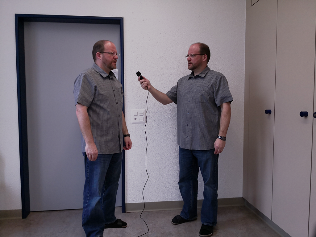 Der Nachteil bei einem Handmikrofon ist, dass man es deutlich in der Aufnahme sieht, was aber meiner Meinung nach bei einem Interview nicht stört. Ansonsten hat mich diese Bauform eigentlich am meisten überzeugt.