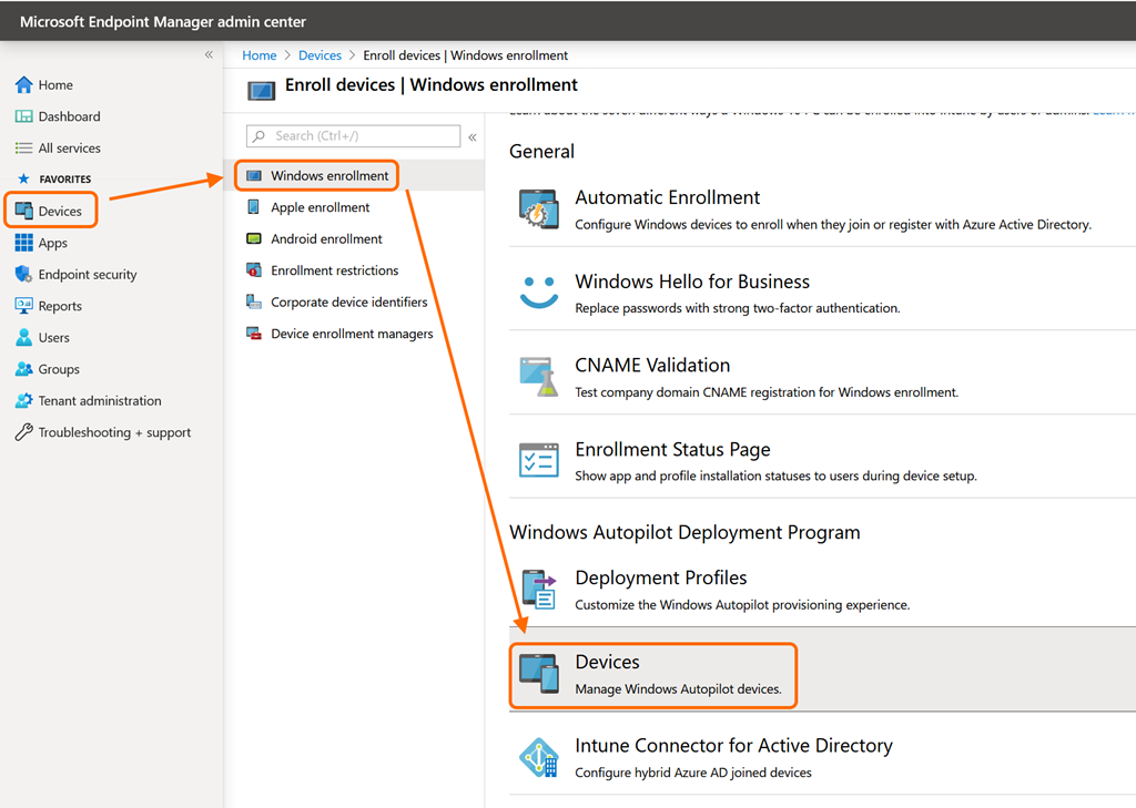 Es gibt verschiedene Wege, wie man die Autopilot Geräte im “Microsoft Endpoint Manager admin center” erfassen kann.