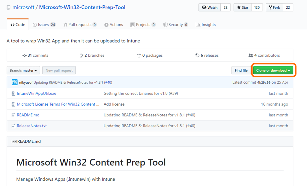 Dazu benötigt man die aktuelle Version vom “Microsoft Win32 Content Prep Tool”, das man von GitHub herunterladen kann.