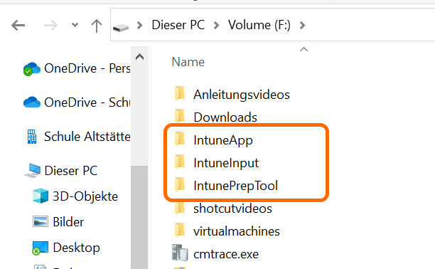 Als erstes kopiert man die Programmdateien in den entsprechenden Ordner (bei mir IntuneInput).