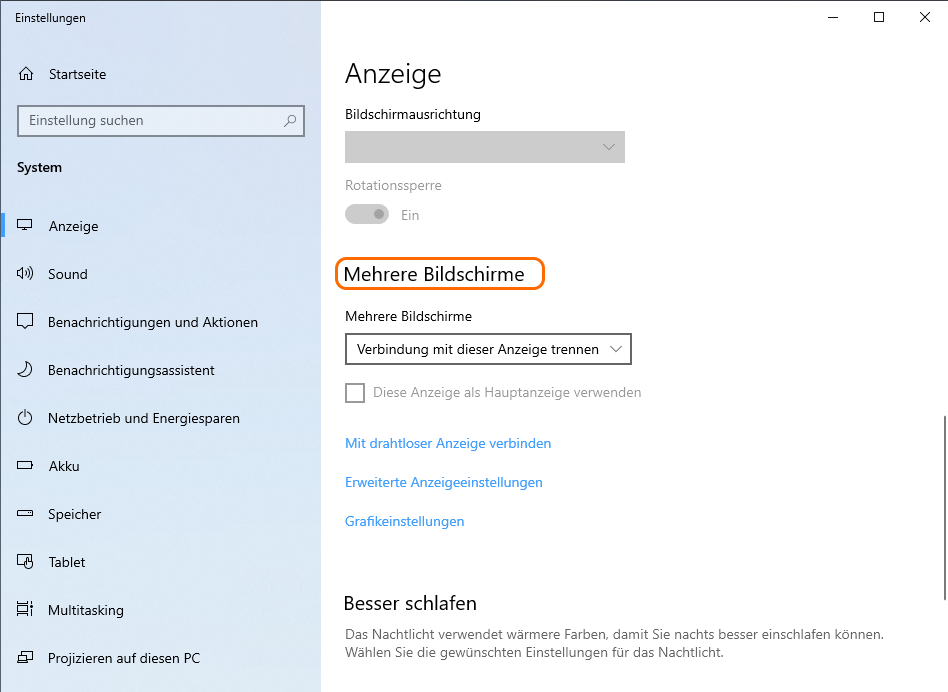 4. Von „Verbindung mit dieser Anzeige trennen“ auf „Desktop auf 2 und 3 duplizieren“ wechseln.