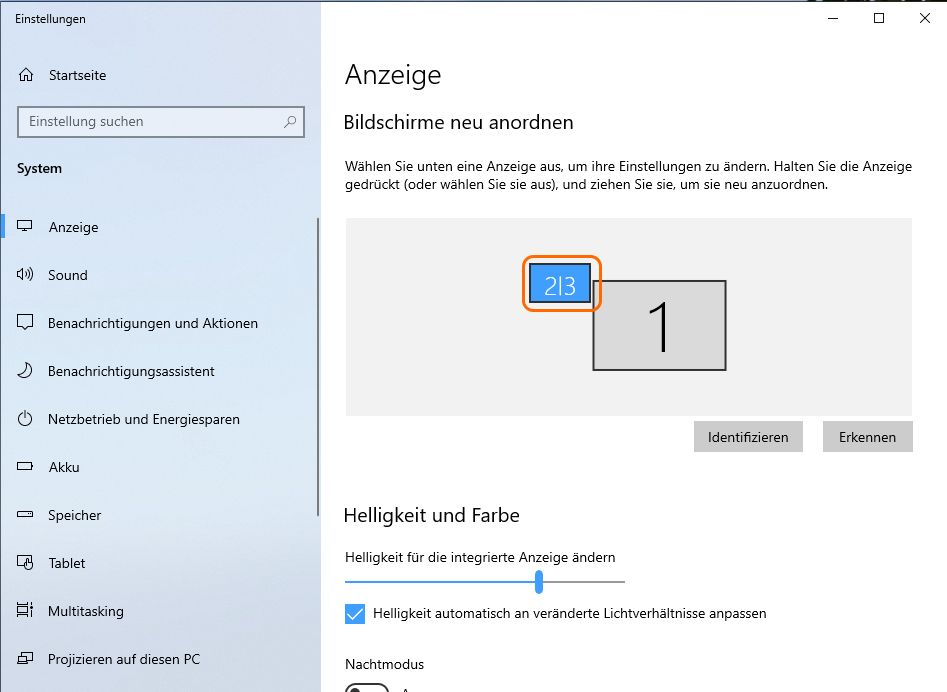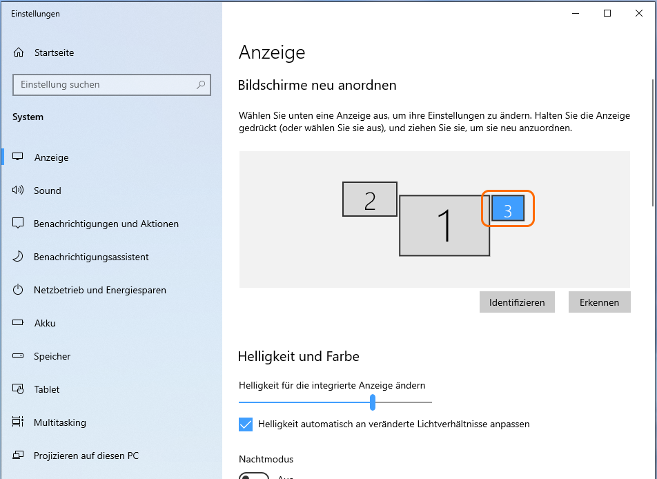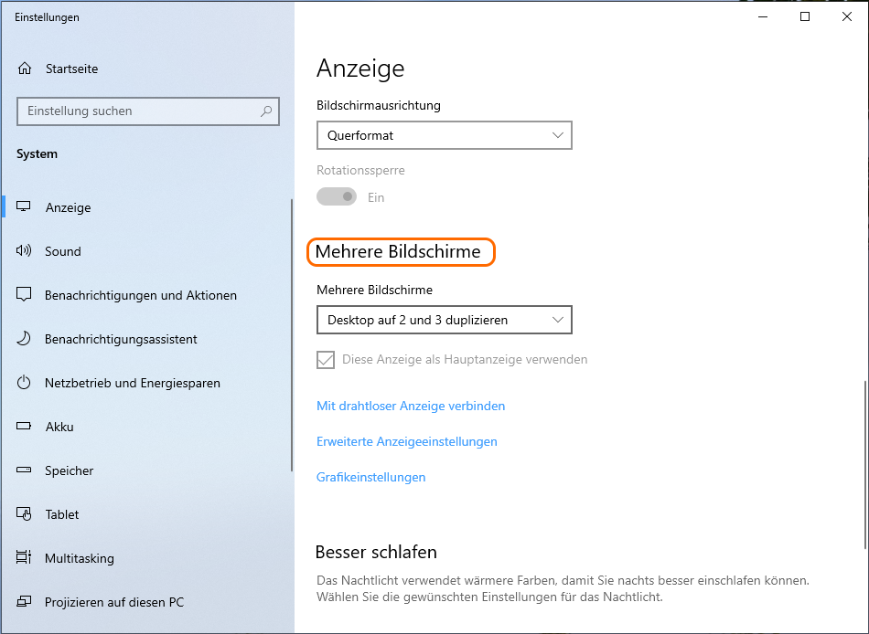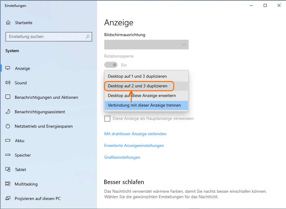 4. Von „Verbindung mit dieser Anzeige trennen“ auf „Desktop auf 2 und 3 duplizieren“ wechseln.
