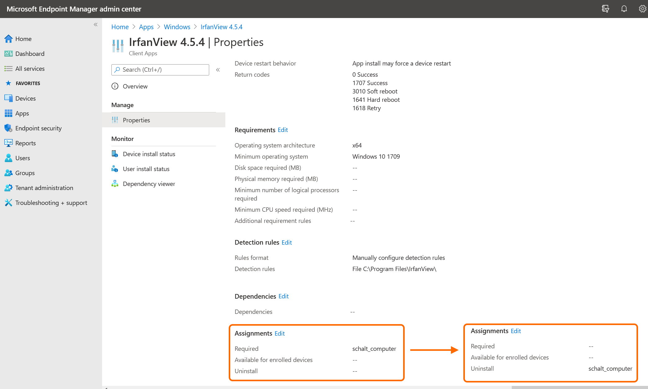 Als erstes stoppt man die Zuweisung der älteren Version und lässt diese deinstallieren.