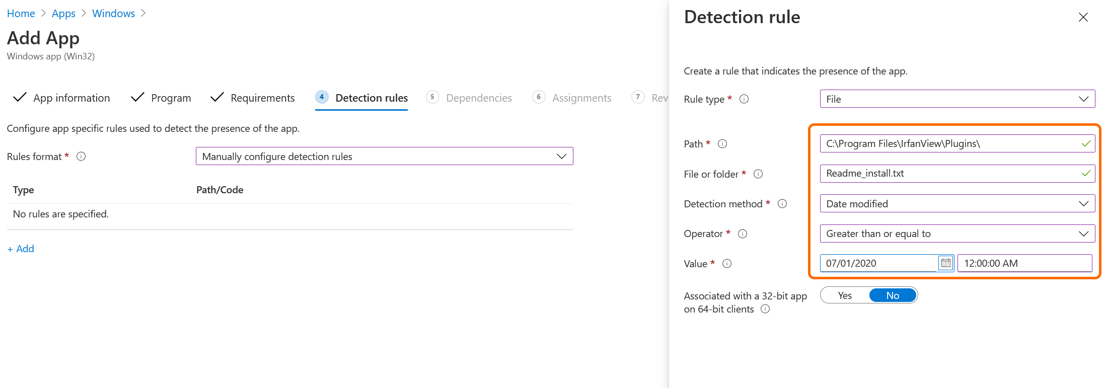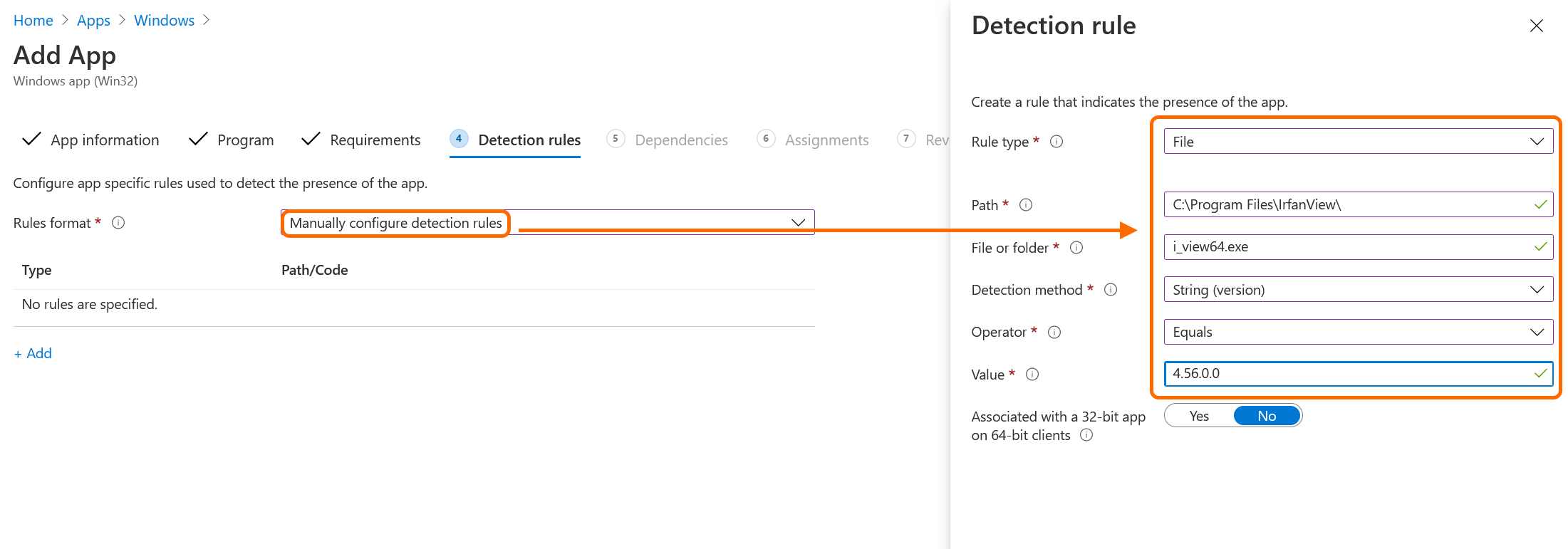 Als „Detection rule“ überprüft man, ob die Programmdatei in der richtigen Version vorliegt.