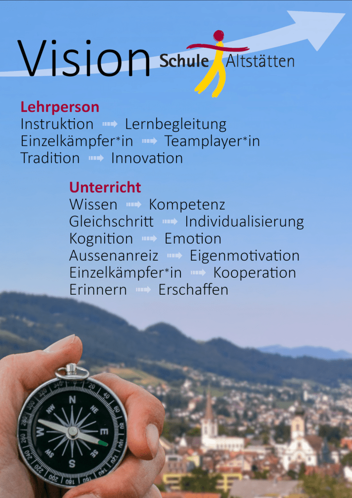 Eine 1:1 Ausstattung ist eine Antwort auf die riesigen Umwälzungen der Gesellschaft, die von der „Digitalisierung“ ausgeht – und damit klar ein Unterrichts- resp. Schulentwicklungsprojekt. Daher haben Schulleitungen, Schulrat und Informatik eine Vision für die Zukunft der Schule Altstätten erarbeitet.
