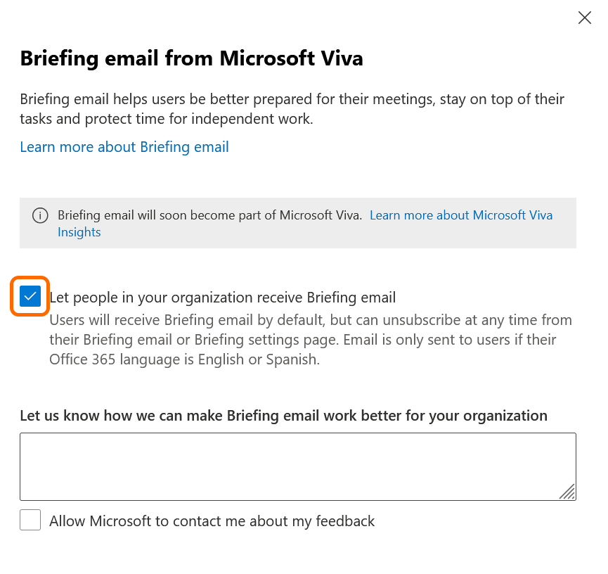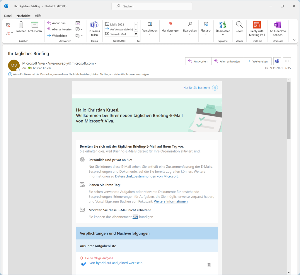 Interessant finde ich in dem Zusammenhang, dass bei der Option zwar gesagt wird, dass die Briefing-Mails nur an Personen mit Office365 in englischer oder spanischer Sprache zur Verfügung stehen. Dennoch kamen diese Mails bei uns in die deutsch-lokalisierten Posteingänge getrudelt.