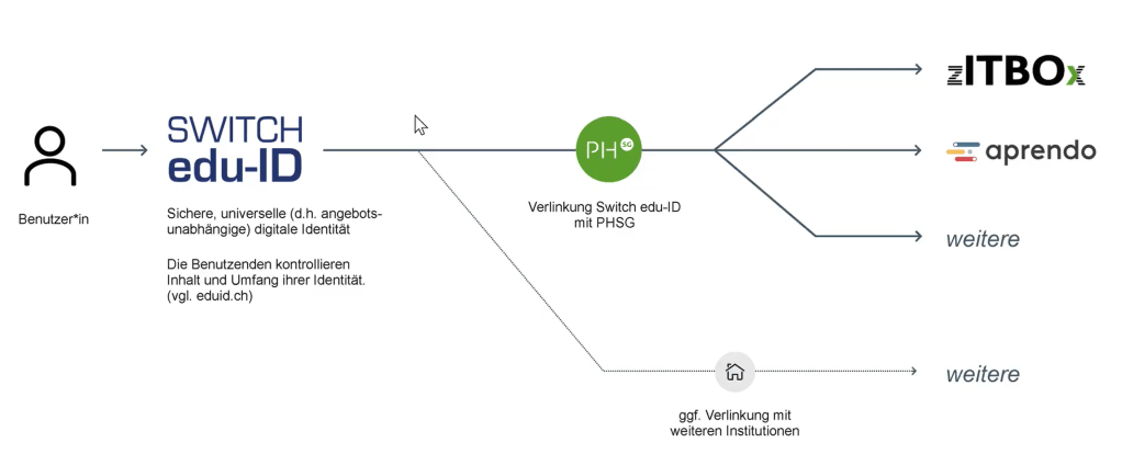 Die PHSG ist mit der Umsetzung betreut und musste sich die Frage stellen, wie sich denn die vielen Lehrpersonen an den beiden Plattformen authentifizieren sollen. Man hat sich für die Switch edu-ID entschieden. Dieser Entscheid ist nachvollziehbar, da es sich dabei um eine Schweizer Lösung handelt, die keinem Grosskonzern gehört. Praktisch wäre es für uns natürlich gewesen, wenn man sich mit mehr als einer Lösung, also auch mit Office 365 direkt an den Plattformen hätte authentifizieren können.