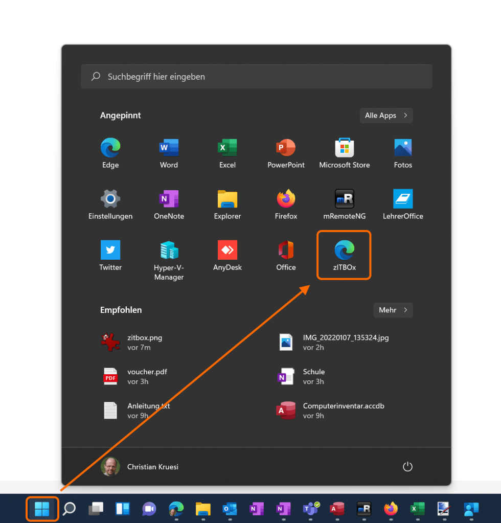 Aber so richtig genial wird es, wenn man auf dem Computer direkt eine Verknüpfung verteilt. Dann können die Lehrpersonen auf ihren Computern die zITBOx und Aprendo wie ein normales Programm starten, und dieses sogar an den Start anpinnen.