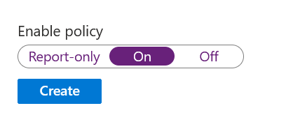 Bevor man die Richtlinie aktiviert muss man noch von „Report-only“ auf „On“ umstellen.