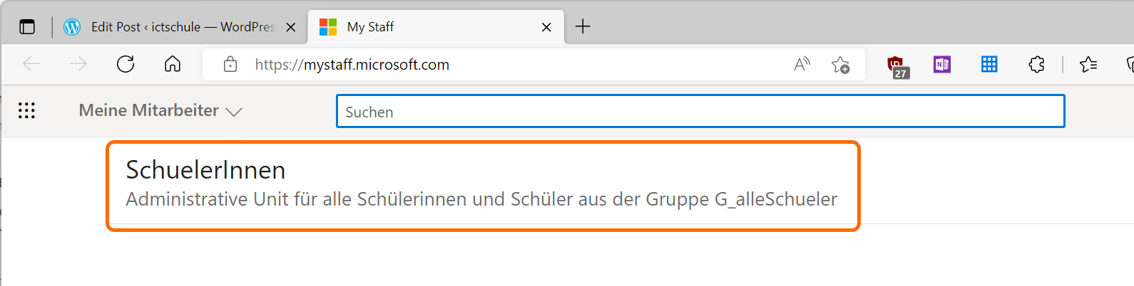 Wenn man das Passwort von den Lernenden zurücksetzen möchte, kann man direkt die Webseite https://mystaff.microsoft.com öffnen.