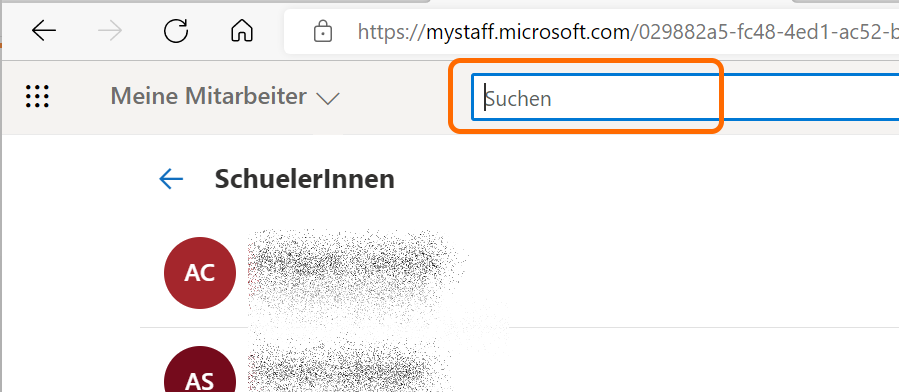 WICHTIG: Im Moment werden bei uns bei einer Suche nicht alle Schüler/-innen angezeigt (allenfalls weil es zu viele sind). Eine Suche nach dem Account, also der Mailadresse, findet aber alle problemlos.