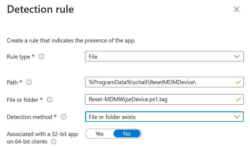 Set-Content -Path "$($env:ProgramData)schalt\ResetMDMDevice\Reset-MDMWipeDevice.ps1.tag" -Value "Installed"