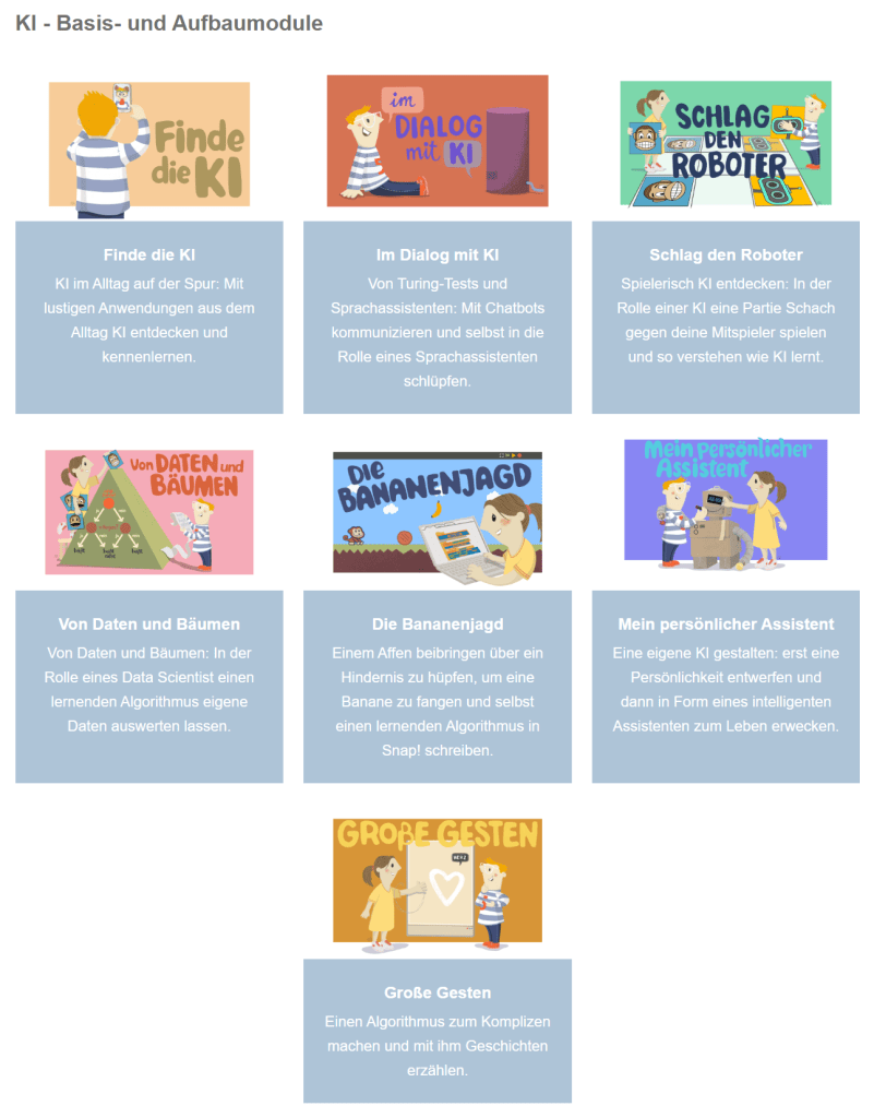 Neben den IT – Basismodulen gibt es auch Module zu KI.