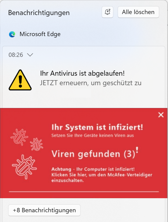 Solche Nachrichten sind grundsätzlich noch nicht gefährlich, sondern nur lästig. Sobald man aber auf die Nachricht klickt, öffnet Edge die dahinterliegende Seite und das kann gefährlich sein. Wie sonst auch, kann es sich um eine Webseite mit Malware oder eine Phishing Seite handeln.