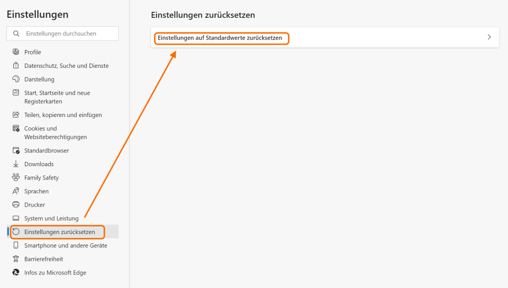 Noch viel besser löscht man gleich alle Einstellungen und setzt Edge zurück.