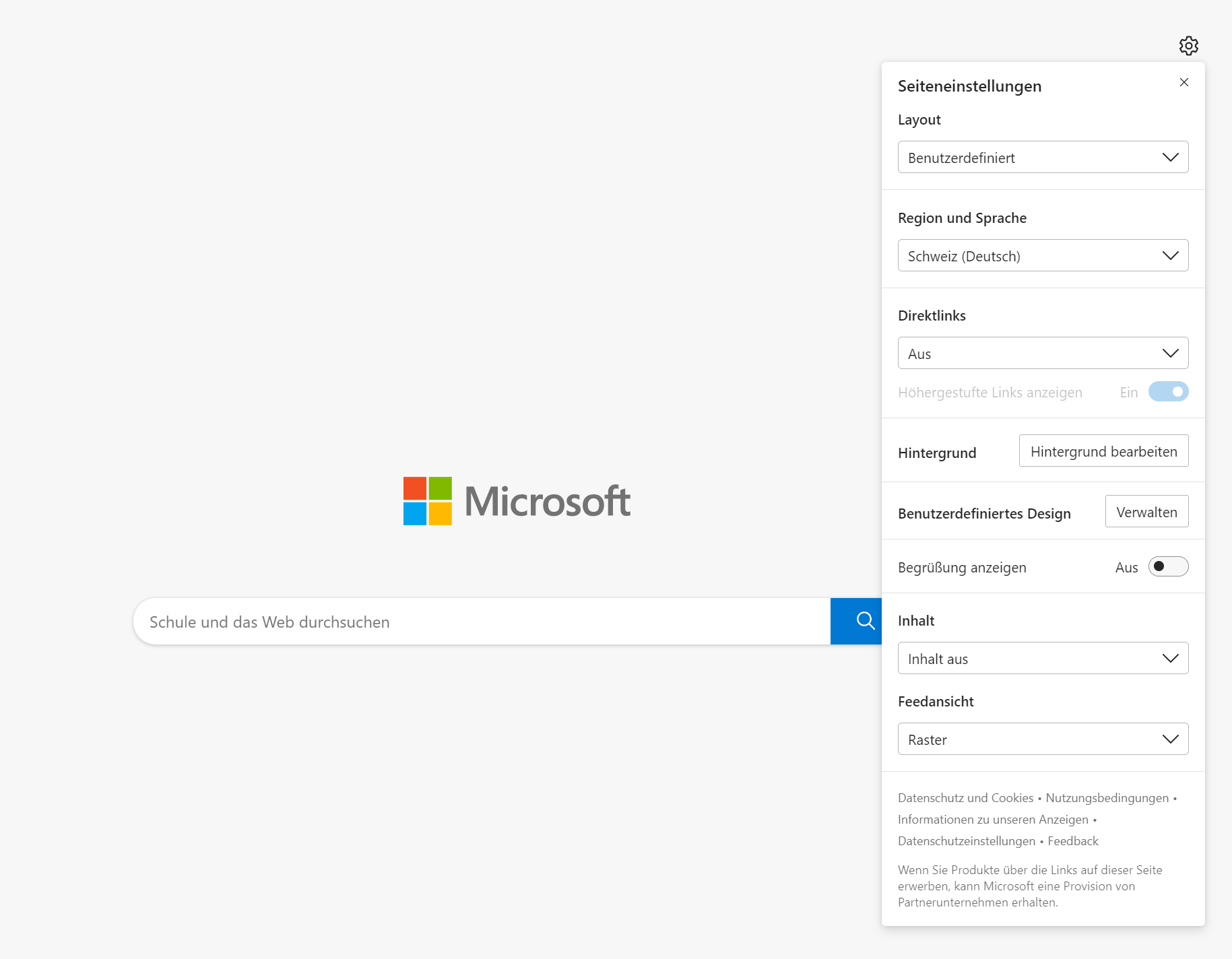 Bei „neuer Tab“ kommt man nicht so ganz einfach von der Microsoft Suche weg, aber immerhin von den überladenen Bing Nachrichten. Und wenn man für die Suche die Adressleiste benutzt stört die Microsoft Suche auf dem neuen Tab ja nicht weiter.