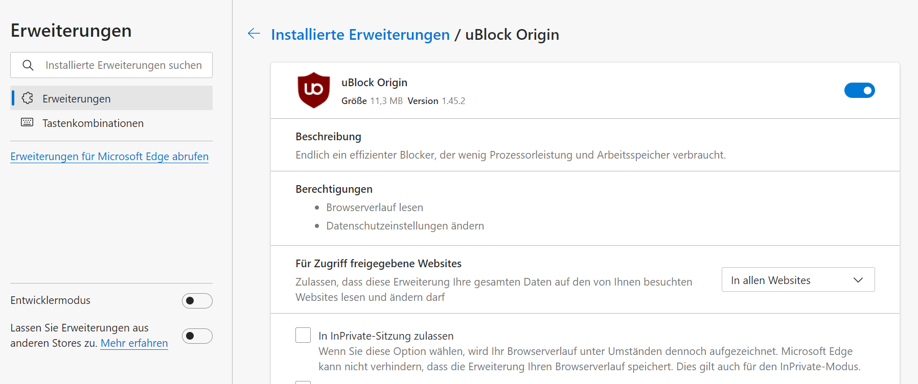 Und zu guter Letzt habe ich schon lange die Browsererweiterung uBlock Origin als Trackingschutz installiert.