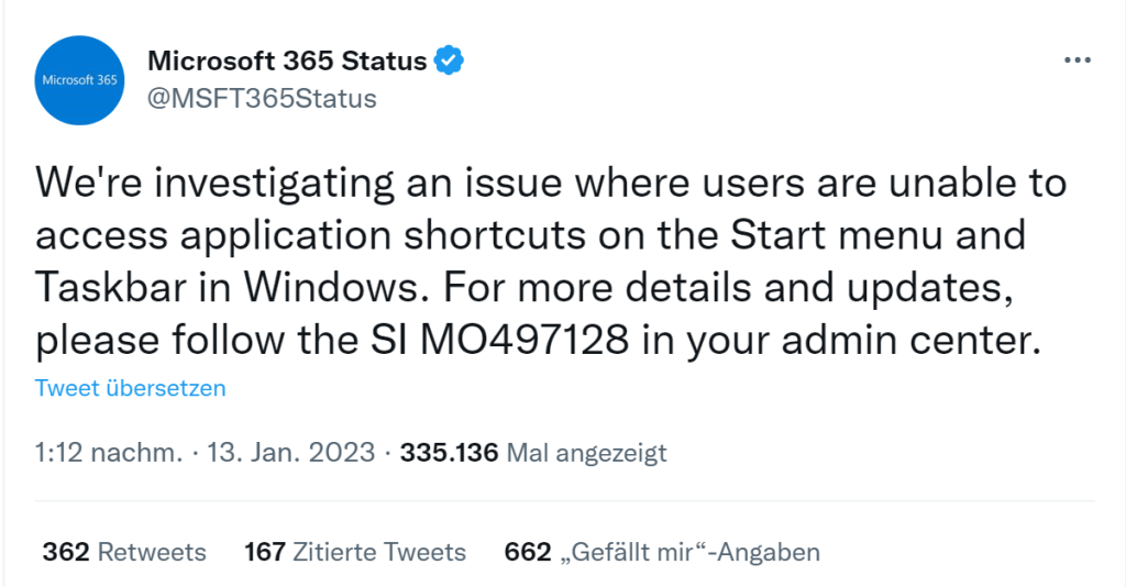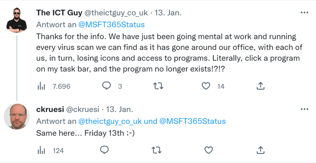 Kurz darauf kamen erste Hinweise auf eine mögliche Lösung und am Nachmittag dann die Bestätigung von einem offiziellen Microsoft Twitteraccount: