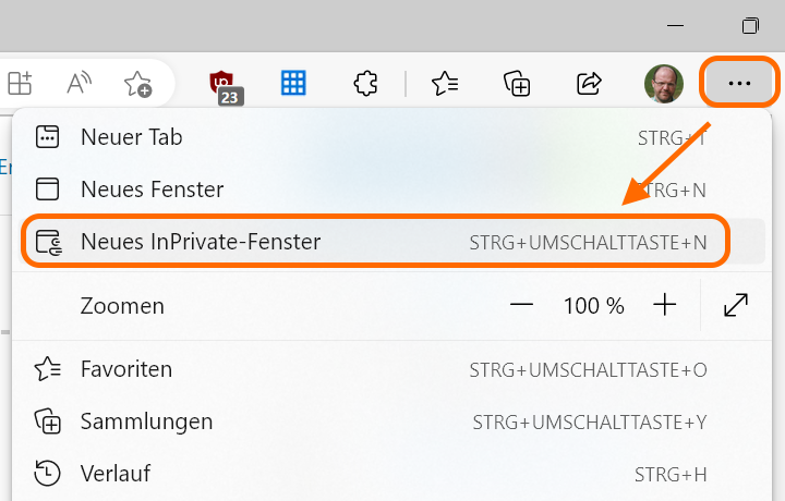 Das Passwort muss man eingeben, wenn man im Bild oben bei den Anmeldeoptionen den Schlüssel auswählt. Eine andere Möglichkeit ist es, sich am Office 365 Portal (https://portal.office.com) anzumelden. Weil wir bei uns single-sign-on eingerichtet haben, muss man kein Passwort eingeben. Man kann dies aber umgehen, indem man ein InPrivate Fenster öffnet: