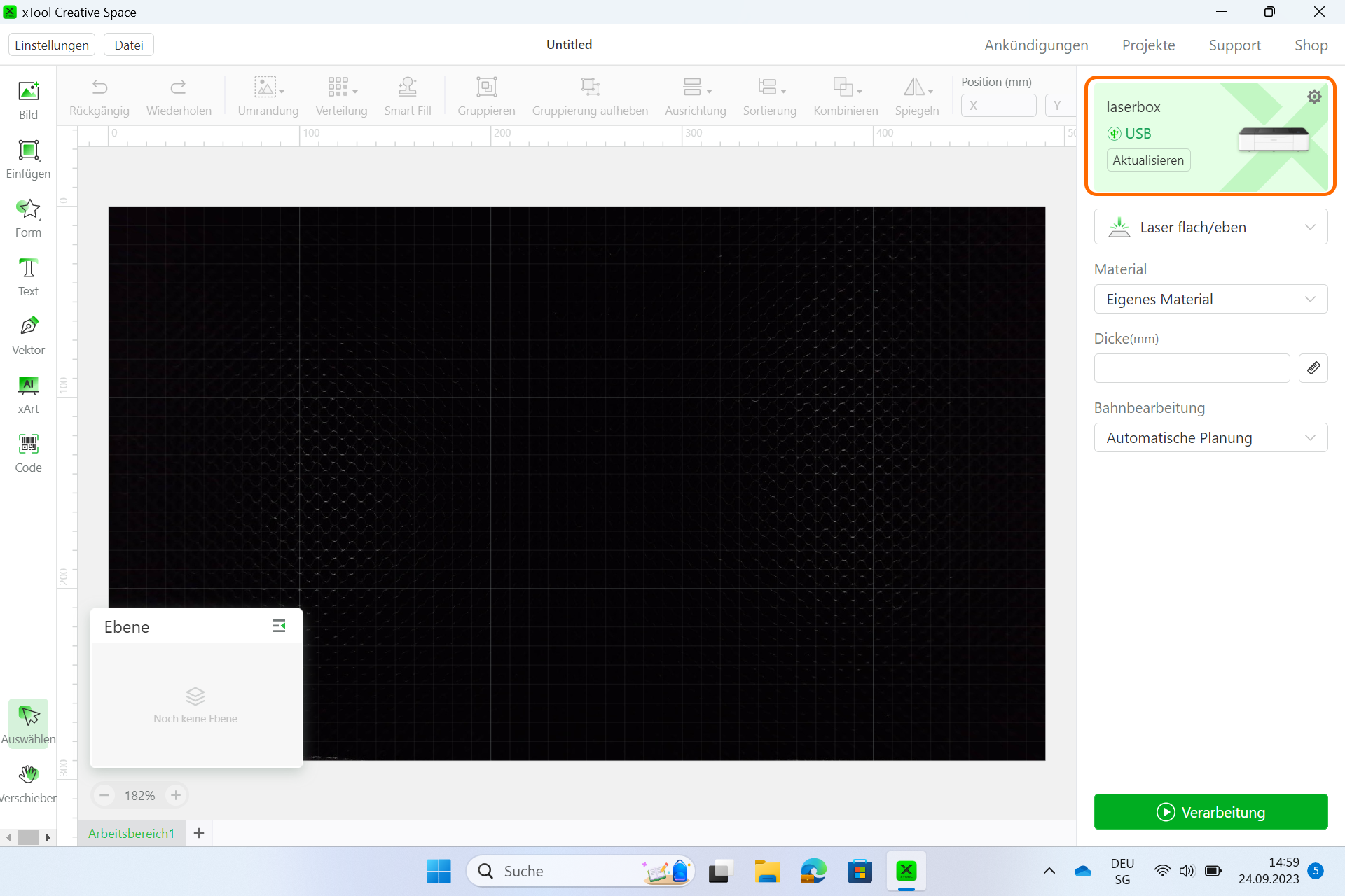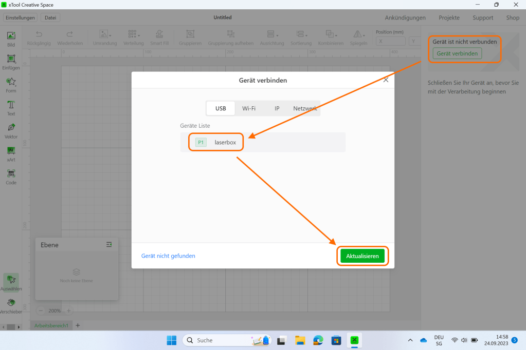 Danach ist die Laserbox verbunden und man kann damit arbeiten.