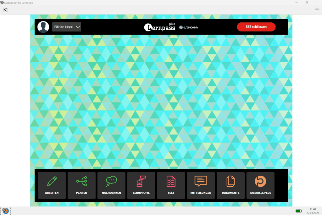 Die Schülerinnen und Schüler können nun im Safe Exam Browser ihren Test starten.