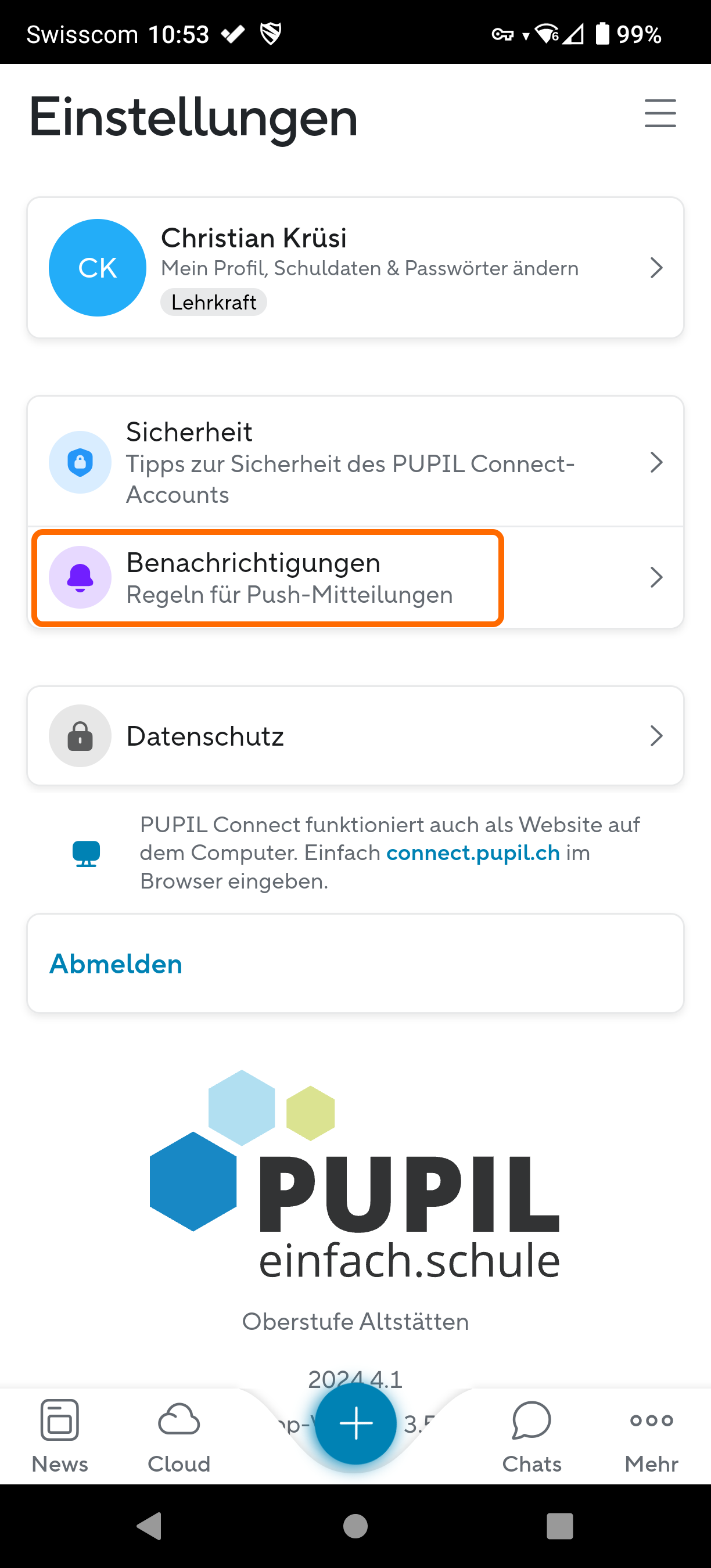 Wenn man keine Push Benachrichtigungen in Connect erhält, kann man sich die Anleitung „Pupil – Connect Einstellungen“ von der Seite https://www.pupil.ch/connect-eltern anschauen. Als Alternative habe ich hier die einzelnen Schritte nochmals dokumentiert: