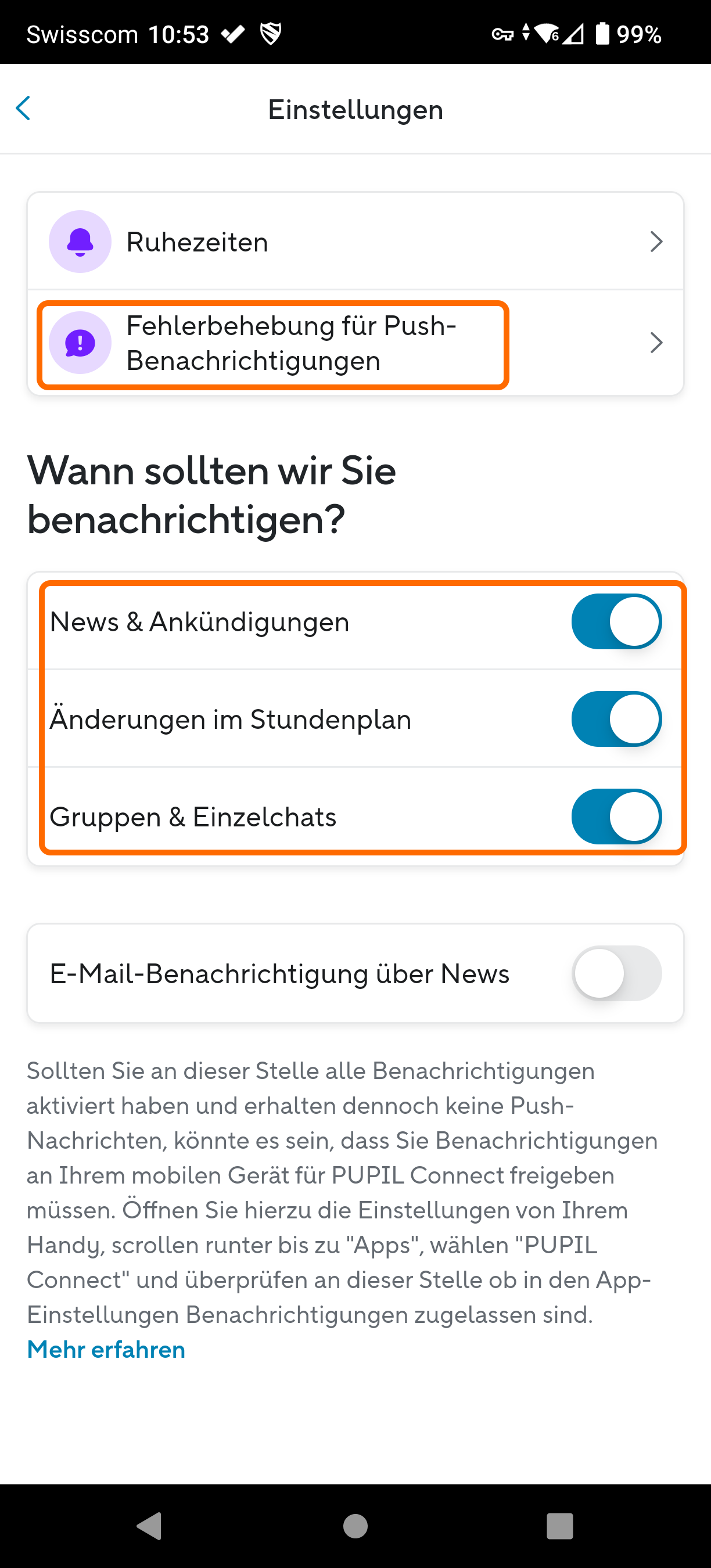 Pupil Connect – Keine Push Benachrichtigungen