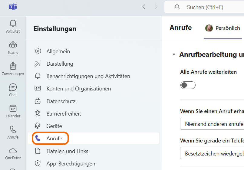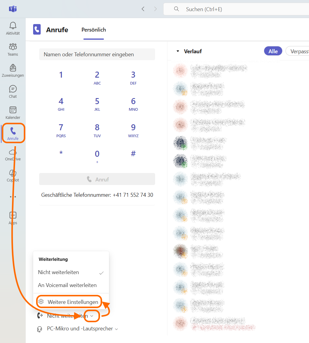 Hier wird aufgezeigt, wie man zu den Anrufeinstellungen kommt. Dieser Beitrag ist Teil einer Serie zu Teams Phone.