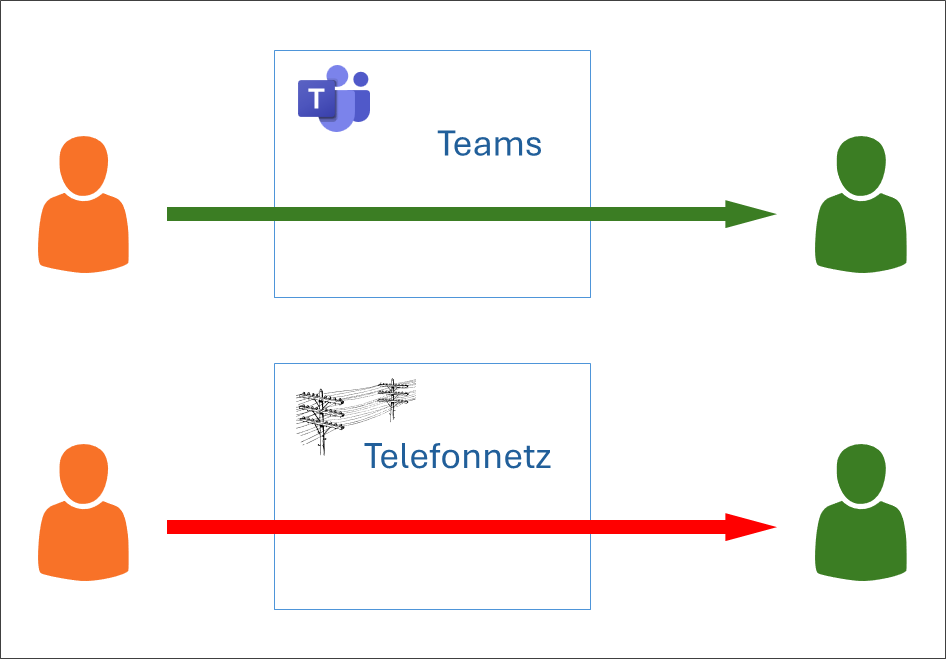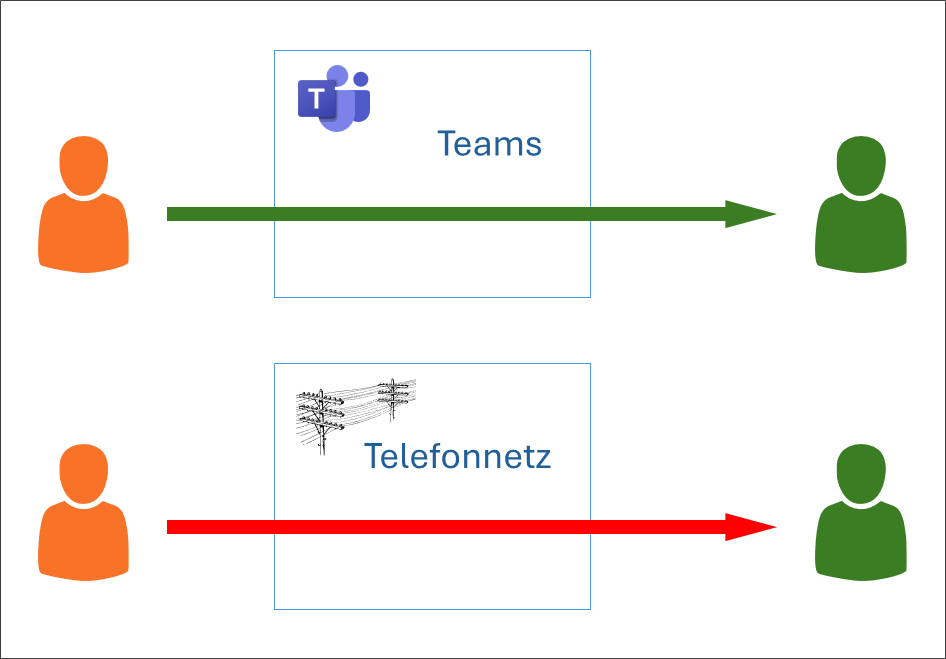 Hier wird aufgezeigt, wieso man zwischen Personen der Schule am besten nur über Teams telefoniert. Dieser Beitrag ist Teil einer Serie zu Teams Phone.
