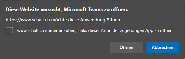 Aus Sicherheitsgründen wird vom Browser noch ein Hinweis angezeigt. Wenn man immer wieder Nummern von der gleichen Seite wählt (z.B. local.ch) kann man das Häklein setzen, damit die Sicherheitsfrage für diese Seite übersprungen wird.