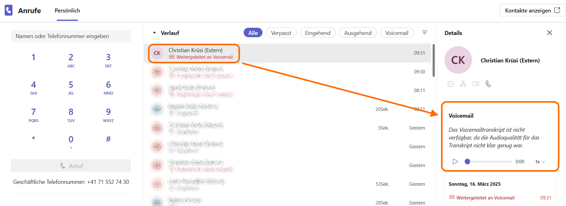 Auf dem Computer kann man dies auch direkt bei der Anrufe Ansicht umstellen.