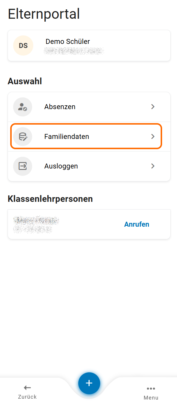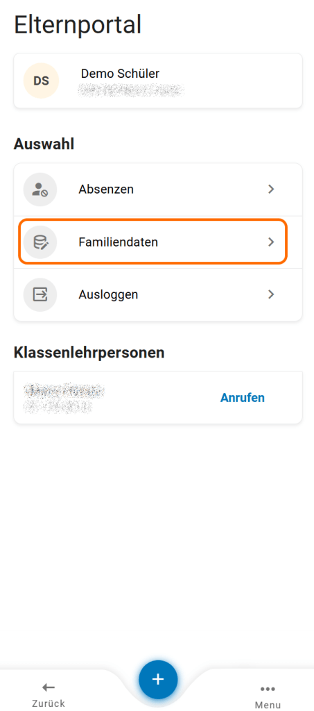 Wenn man sich am Elternportal angemeldet hat, wählt man Familiendaten.