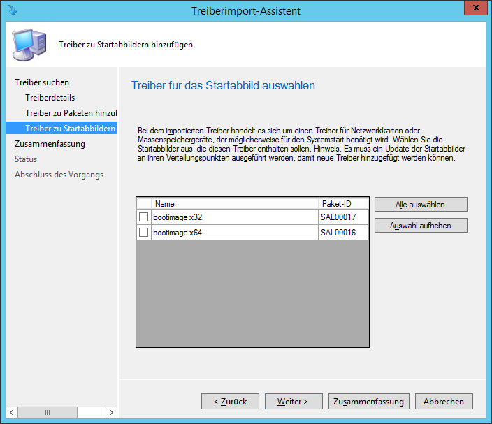 Dazu wählt man bei den Eigenschaften des Startabbilds die Registerkarte “Treiber” und dann den “Stern”, um allfällig gewünschte Treiber einzubinden. Man sollte aber das Startabbild so klein wie möglich halten und nur wirklich benötigte Treiber einbinden.