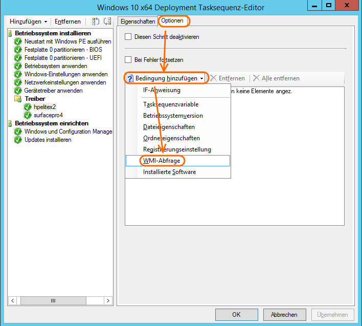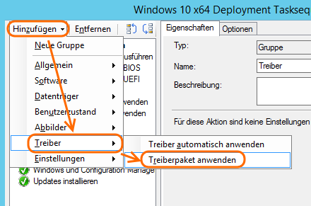Jetzt muss man noch die Tasksequenz so anpassen, dass das Treiberpaket bei den richtigen Geräten angewendet wird.
