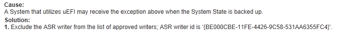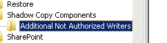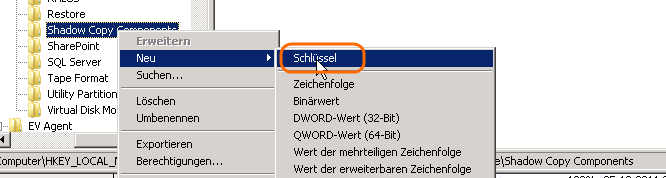Gemäss dieser Anleitung kann man im Registrierungseditor unter “HKEY_LOCAL_MACHINE\SOFTWARE\Symantec\Backup Exec for Windows\Backup Exec \Engine\Shadow Copy Components\” einen neuen Schlüssel “Additional Not Authorized Writers” erstellen.